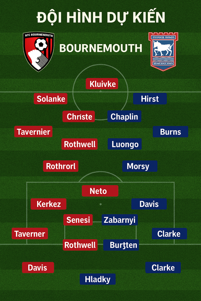 Trận đấu hứa hẹn sẽ diễn ra giằng co với nhiều toan tính chiến thuật. Bournemouth có thể cầm bóng nhiều hơn, nhưng Ipswich với tốc độ và lối đá khoa học có thể khiến chủ nhà mất điểm.