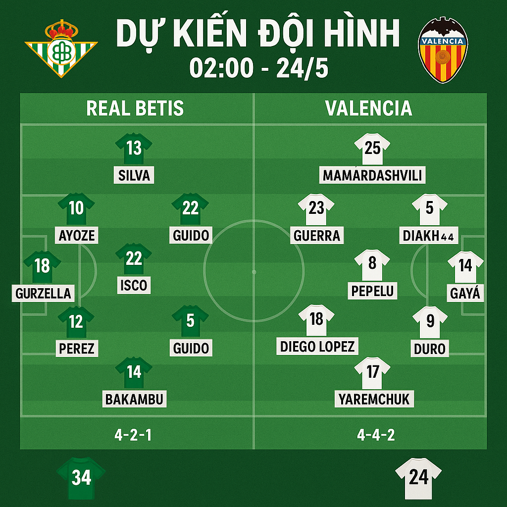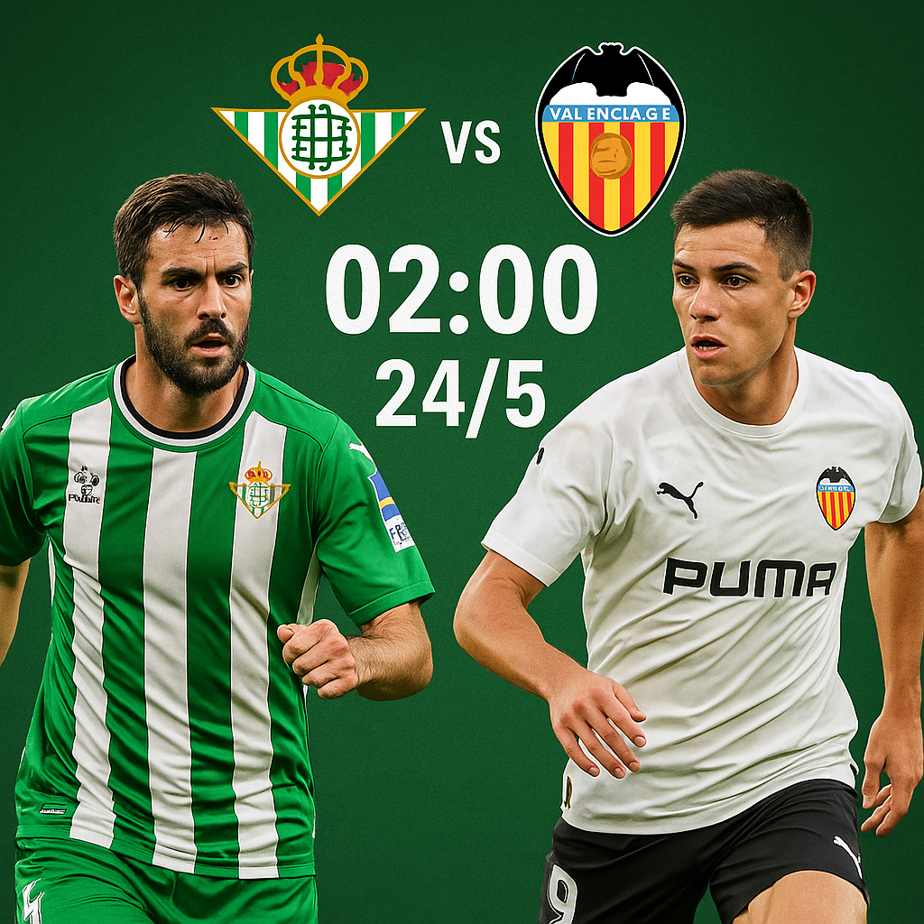 Trận đấu lúc 02h00 ngày 24/5 trên sân Benito Villamarín giữa Real Betis và Valencia mang ý nghĩa cực lớn trong cuộc đua suất châu Âu. Betis cần điểm để bám sát nhóm trên, còn Valencia không được phép sảy chân nếu muốn chen chân vào top 6.