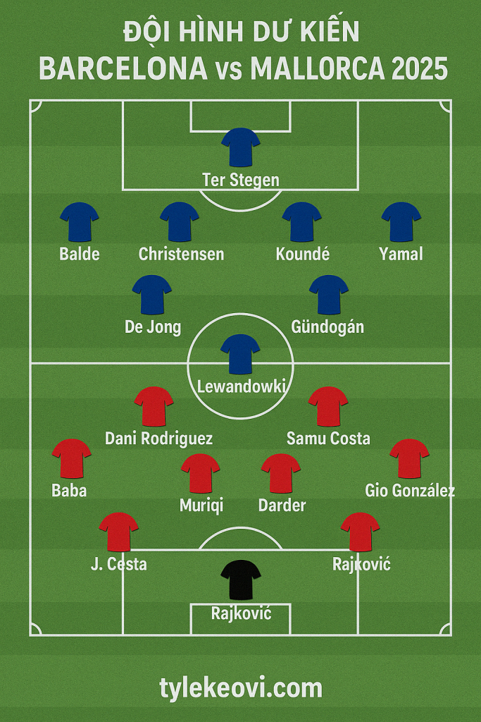 • Barcelona: 4-3-3 (Ter Stegen – Cancelo, Koundé, Araujo, Balde – Pedri, Gündoğan, De Jong – Raphinha, Lewandowski, Félix)