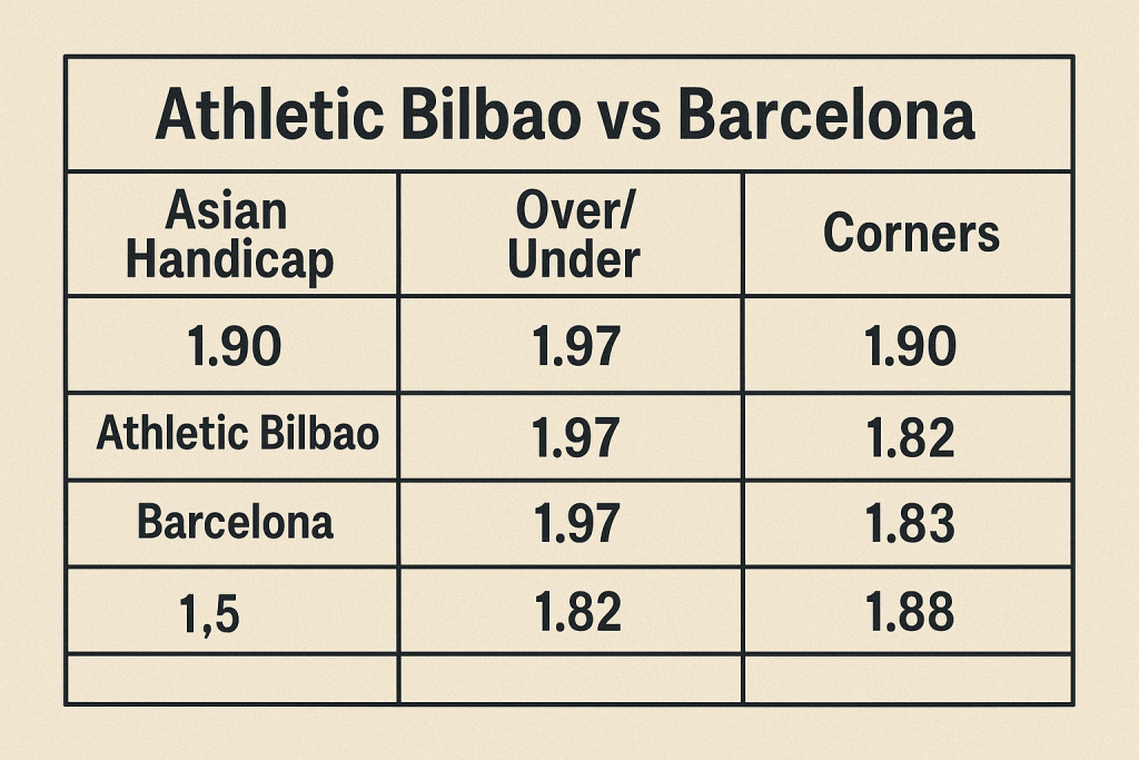 - Biến động: Kèo ban đầu là -0.5 → giảm còn -0.25 → tín hiệu nghiêng về Bilbao, nhưng Barca vẫn là lựa chọn hợp lý nếu chốt sớm.