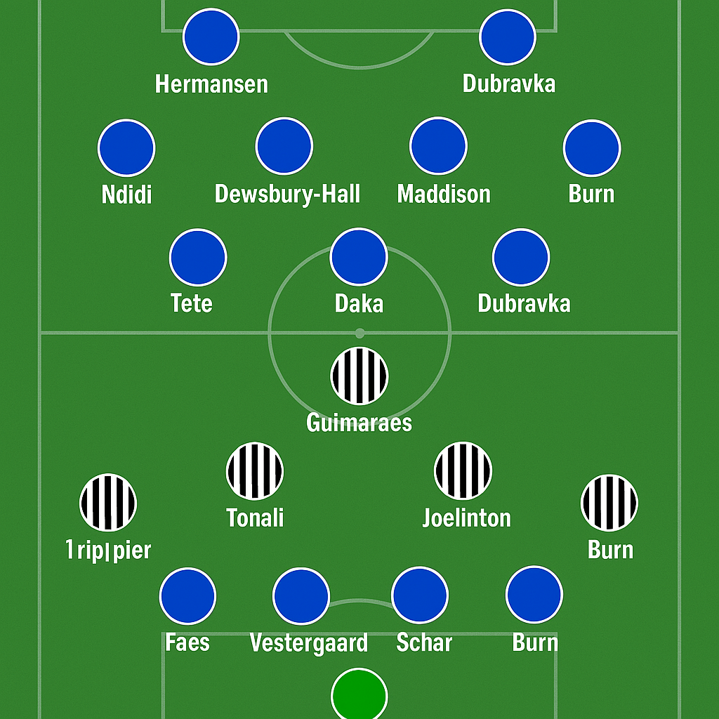- Key battle: Maddison vs Guimaraes – Ai làm chủ khu trung tuyến sẽ quyết định cục diện.